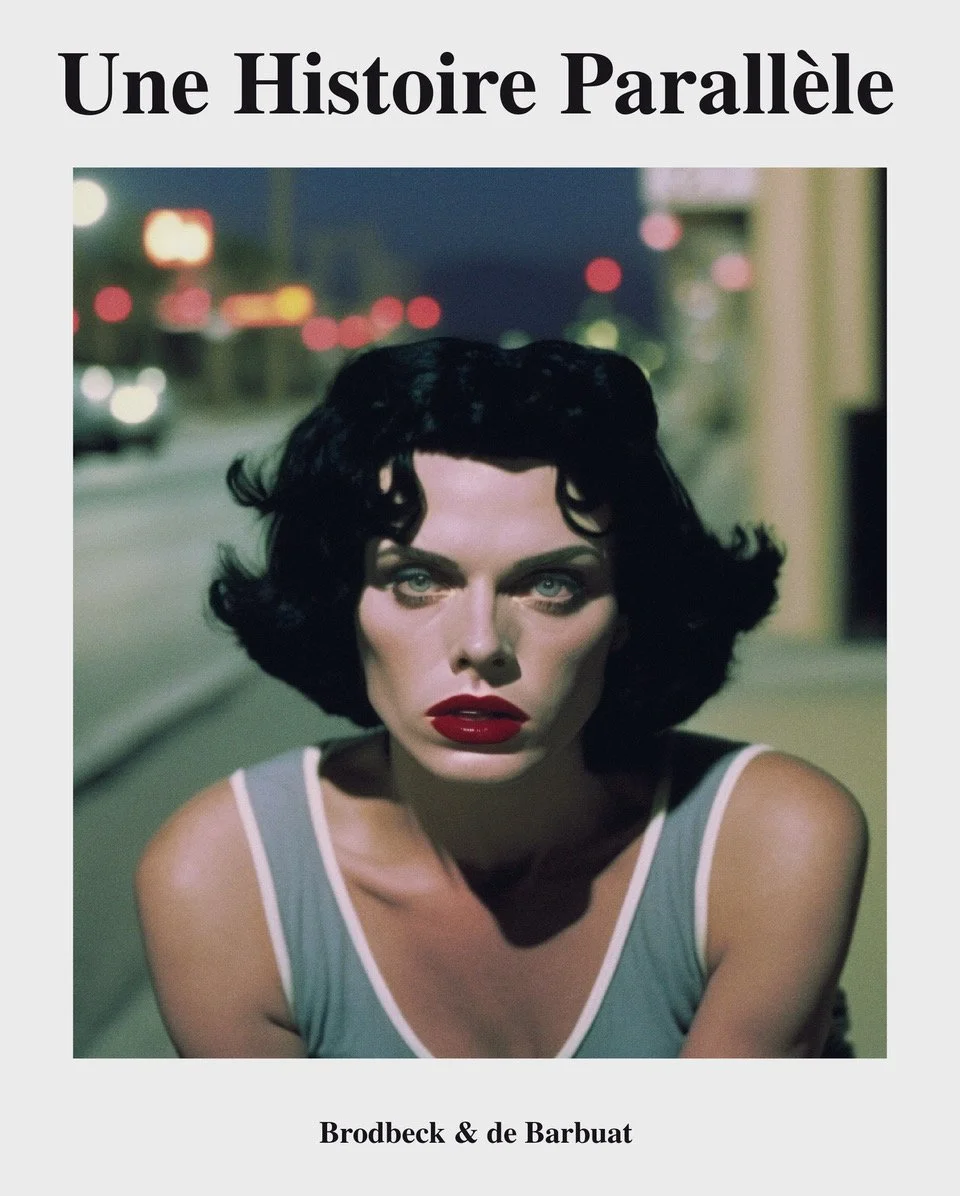 Avec Une Histoire Parallèle (2022), Brodbeck & de Barbuat mettent l’intelligence artificielle à l’épreuve de la mémoire collective. En partant de descriptions minutieuses de plus de deux cents images emblématiques — de Man Ray à Dorothea Lange, de Guy Bourdin à Jeff Wall — ils confrontent MidJourney aux mythologies de l’histoire de la photographie. Les images générées ressemblent aux originaux mais laissent affleurer des anomalies : mains difformes, motifs récurrents, détails déplacés. Elles révèlent les enjeux brûlants de l’IA : appropriation, dilution d’un patrimoine visuel, standardisation esthétique.